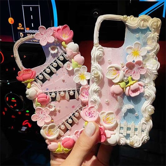 Handmade Cartoon Cherry Blossom Peach Cream Phone Case (Customizable) | ZAKAPOP