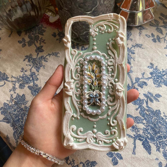 Handmade Palace Ladies 3d Oil Painting Retro Cream Phone Case (Customizable) | ZAKAPOP