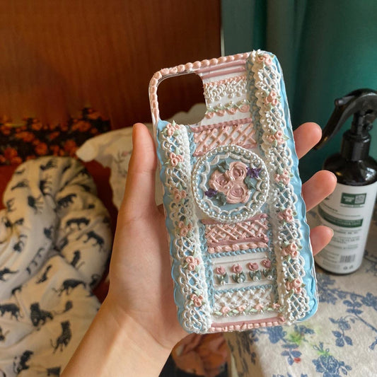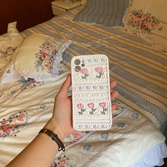Handmade Pastoral Flowers And Lace 3d Oil Painting Retro Cream Phone Case (customizable) | ZAKAPOP