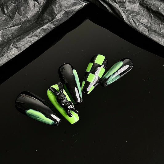 Handmade Cyberpunk Dark Hot Bunny Press-on Nail Art | ZAKAPOP