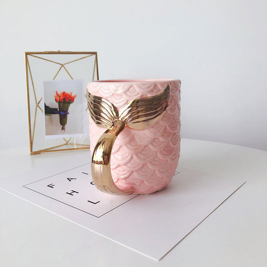 Pearl Glazed Golden Mermaid Tail Water Cup | Mermaid Gift