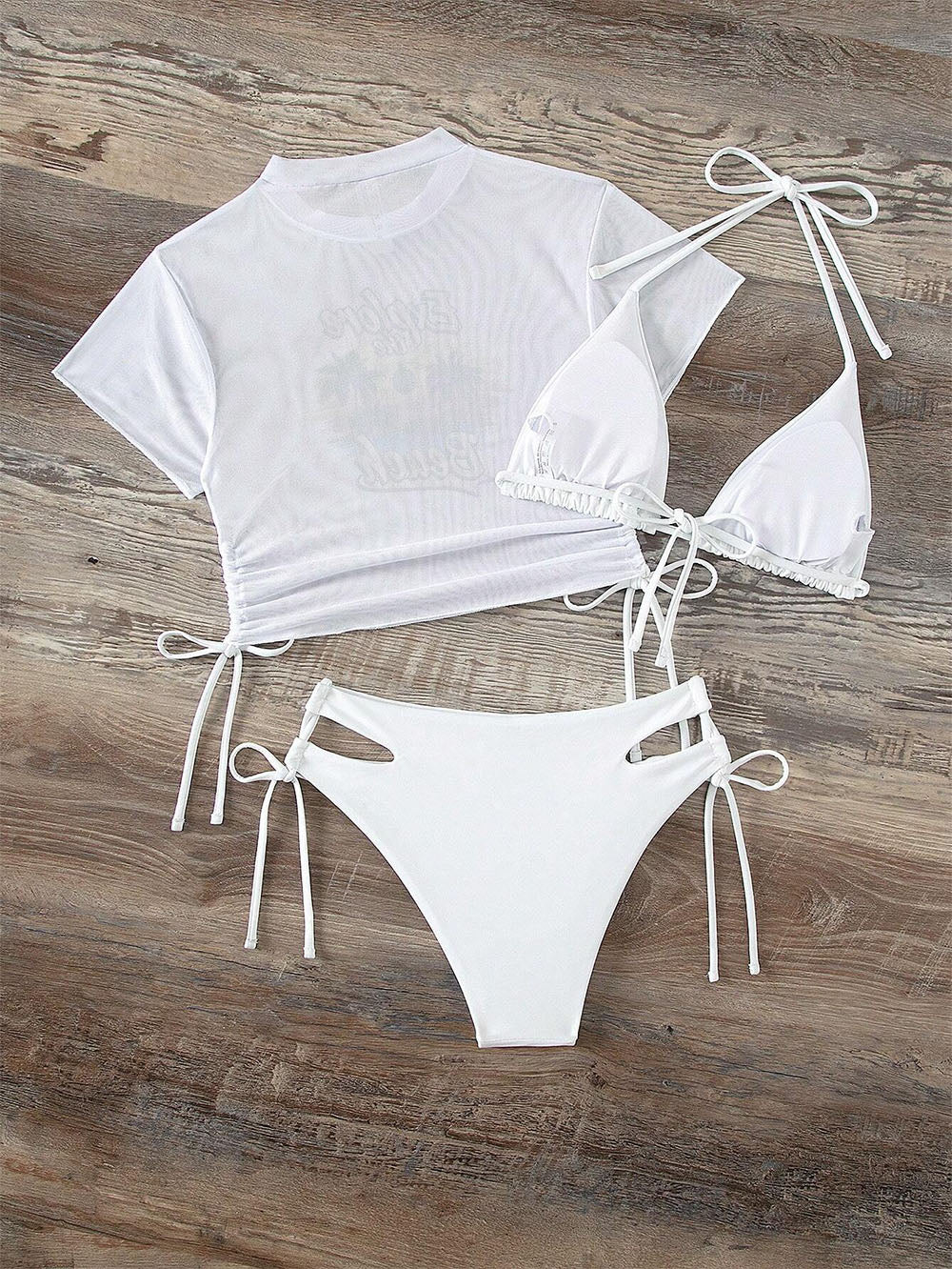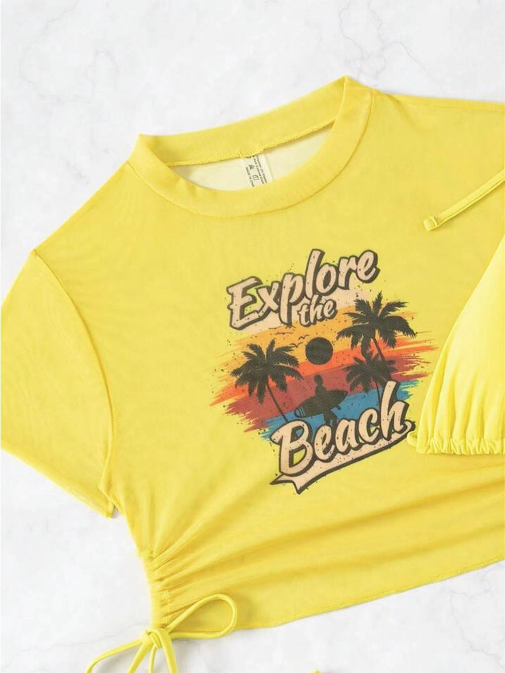 3 Pieces Women's Beach Scenery Letter Print Swimsuit | ZAKAPOP