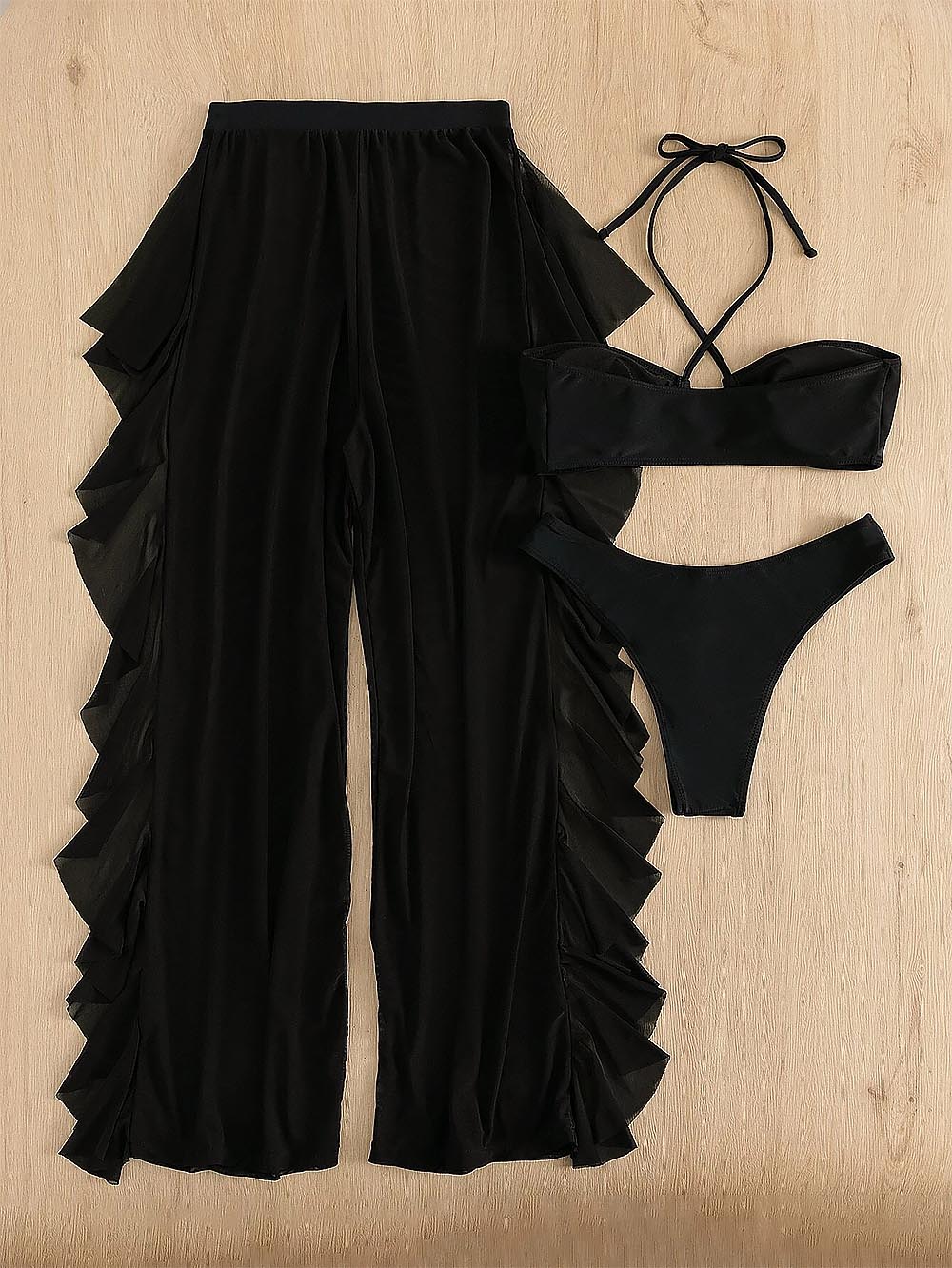 3pack Criss Cross Halter Bikini Swimsuit & Cover Up Pants | ZAKAPOP