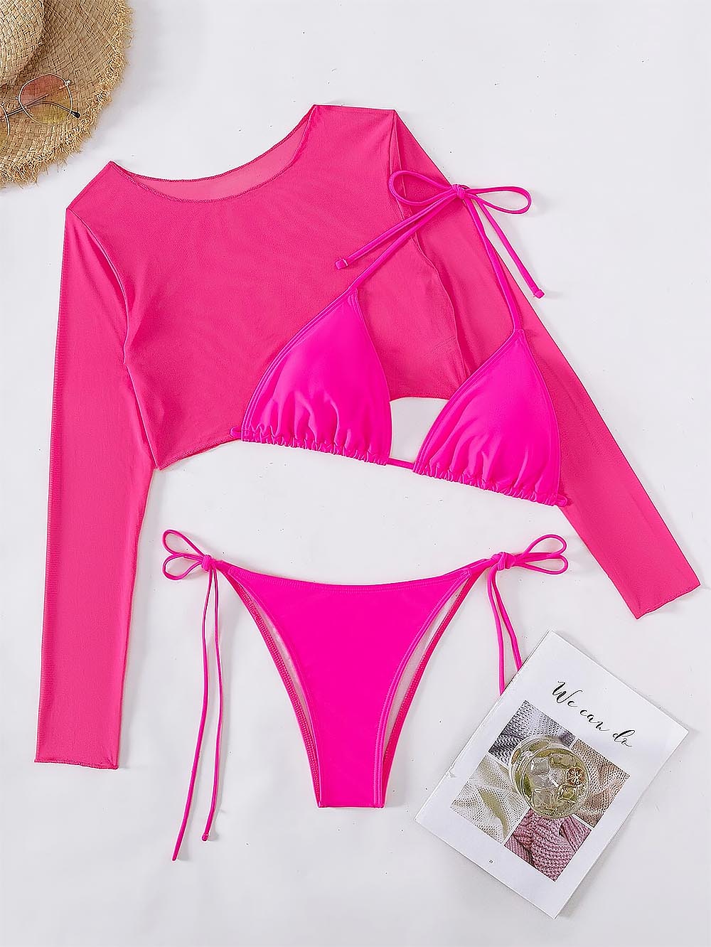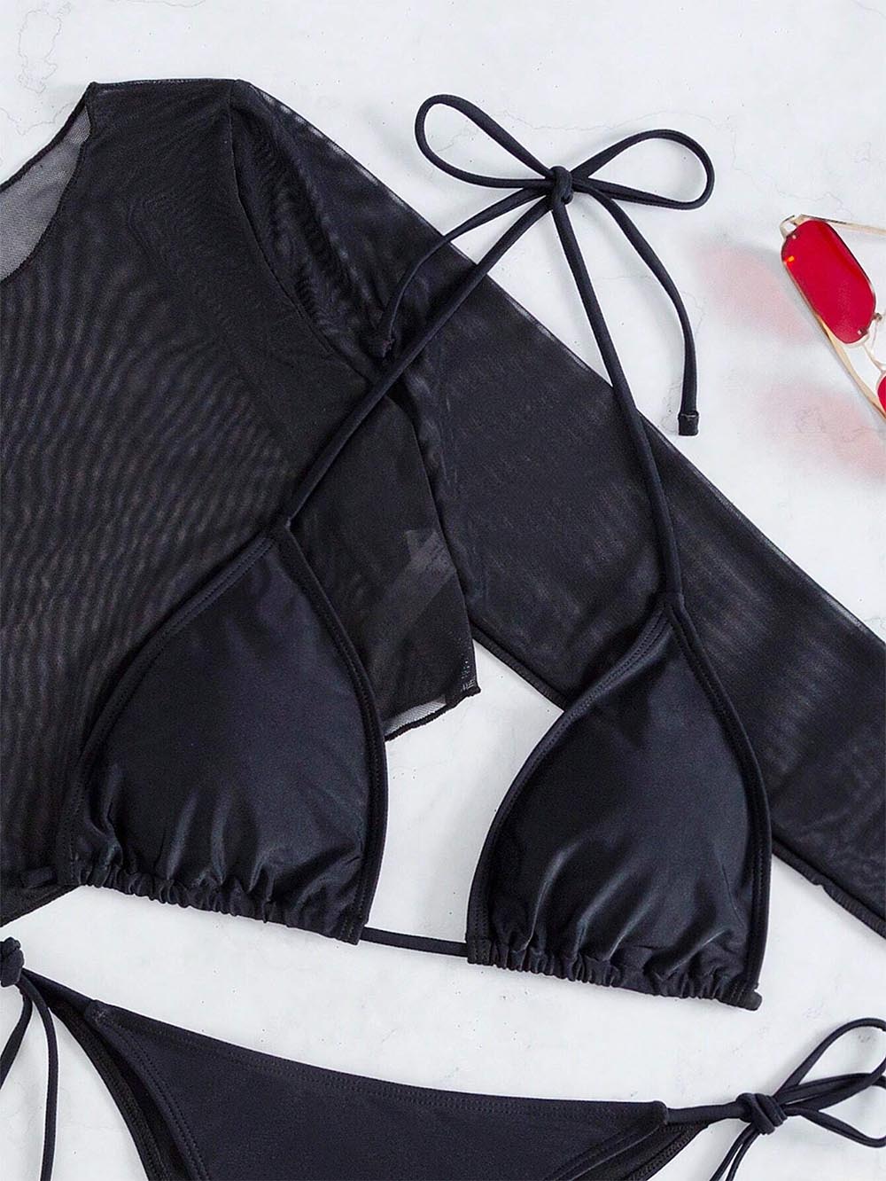 3 Pack Solid Halter Triangle Bikini Swimsuit & Cover Up Top | ZAKAPOP