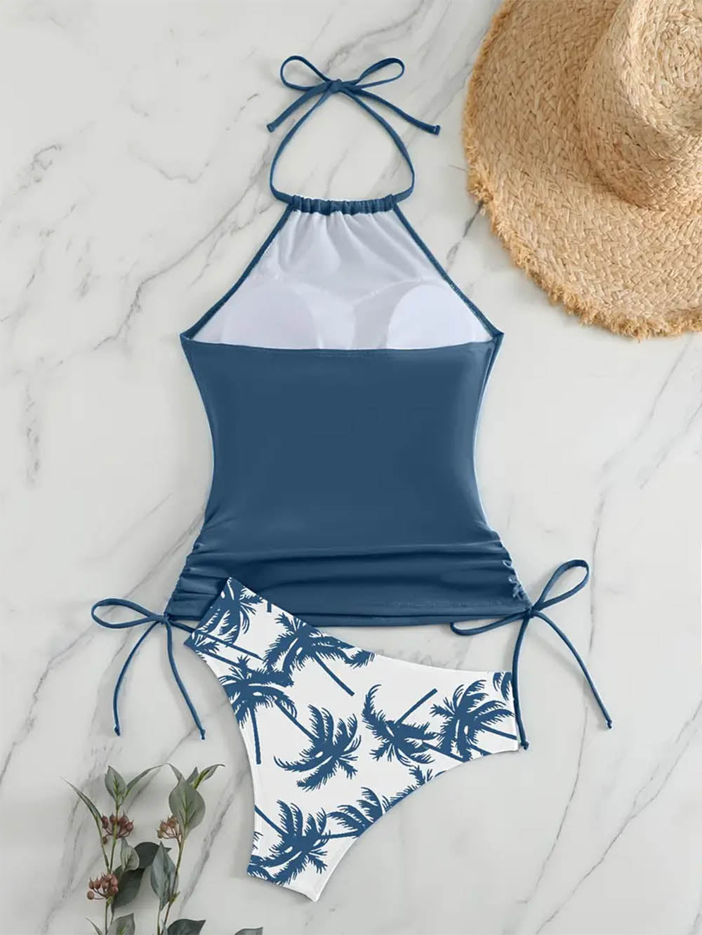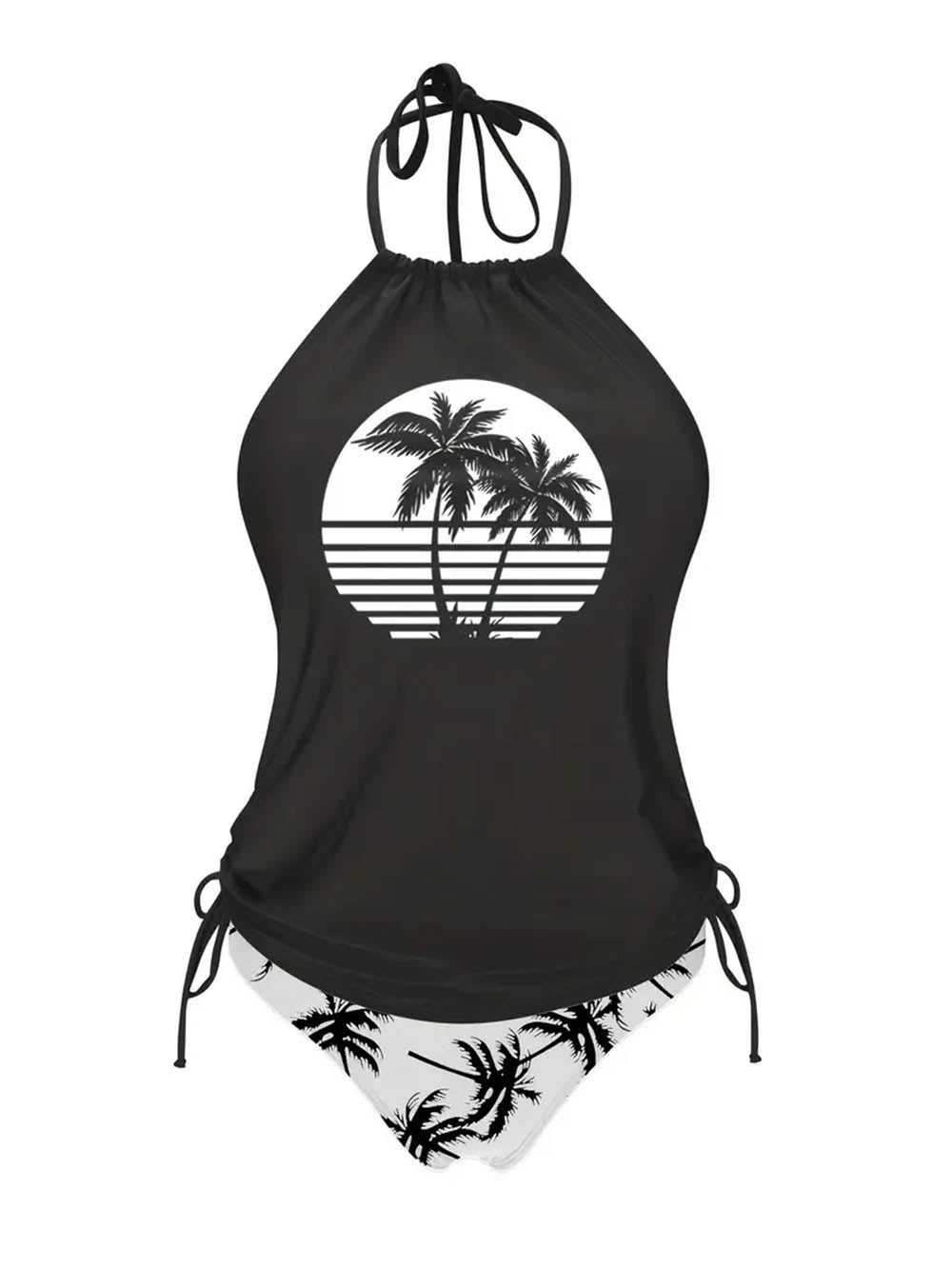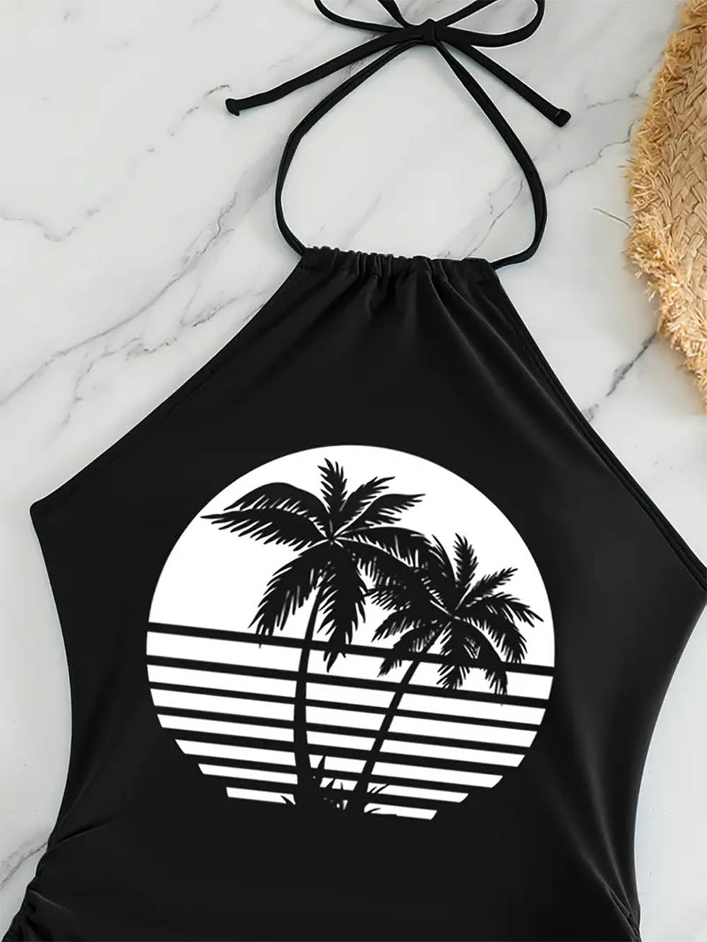 Coconut Tree Halter Tie Neck Backless Stretchy Swimsuit | ZAKAPOP