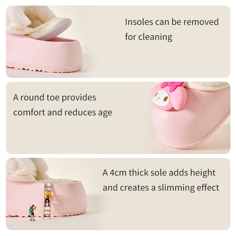 Unique Design: Adorable Cartoon Character Appearance & Plush Collar for a charming and elegant look. Waterproof upper and plush lining to help you withstand the harsh winter chill. Thickened sole for added height and a slimmer appearance.