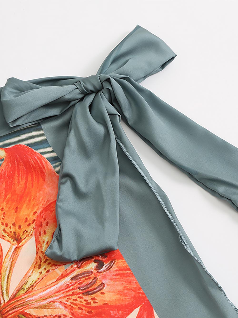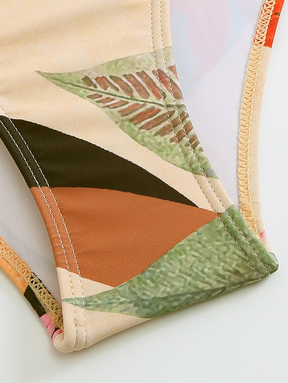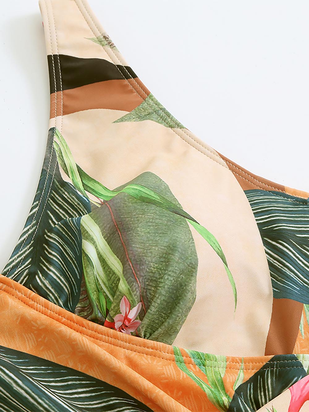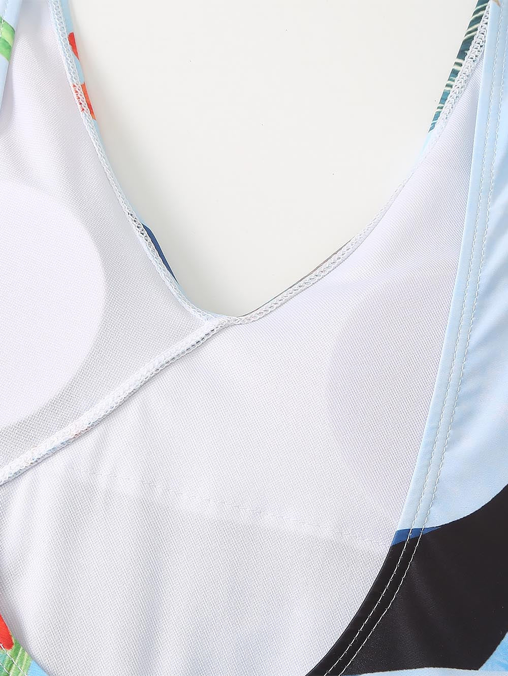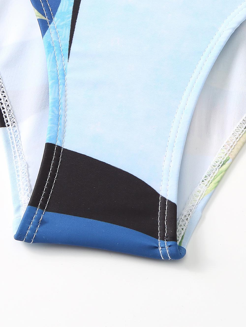 One Piece Printed Open Back Swimsuit with Hip Length Skirt Set | ZAKAPOP