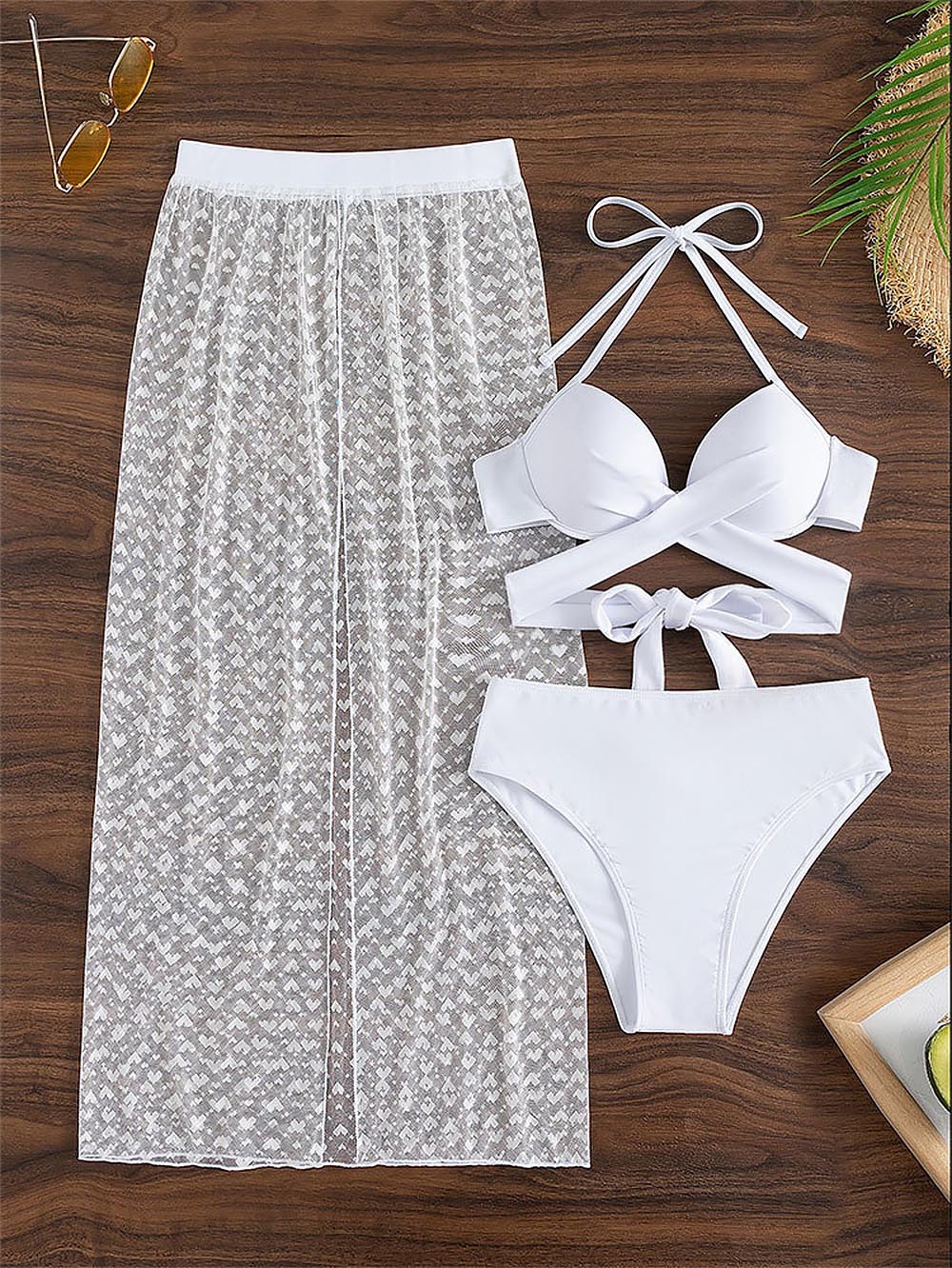 Sensual Three Pieces Bikini with Mesh Skirt Three Pieces Swimsuit | ZAKAPOP