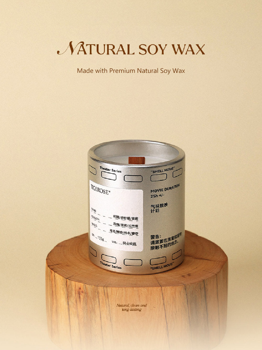 Crafted with premium natural soy wax made from non-toxic materials, and finished with a double-layer cherry wood wick, the candle burns evenly and cleanly, delivering a refined and satisfying experience.