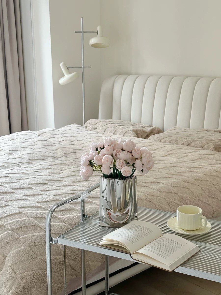 This Shopping Bag Vase features smooth, flowing contours with a radiant silver finish. Its bag-inspired silhouette is unique and eye-catching, blending playful design with modern elegance.